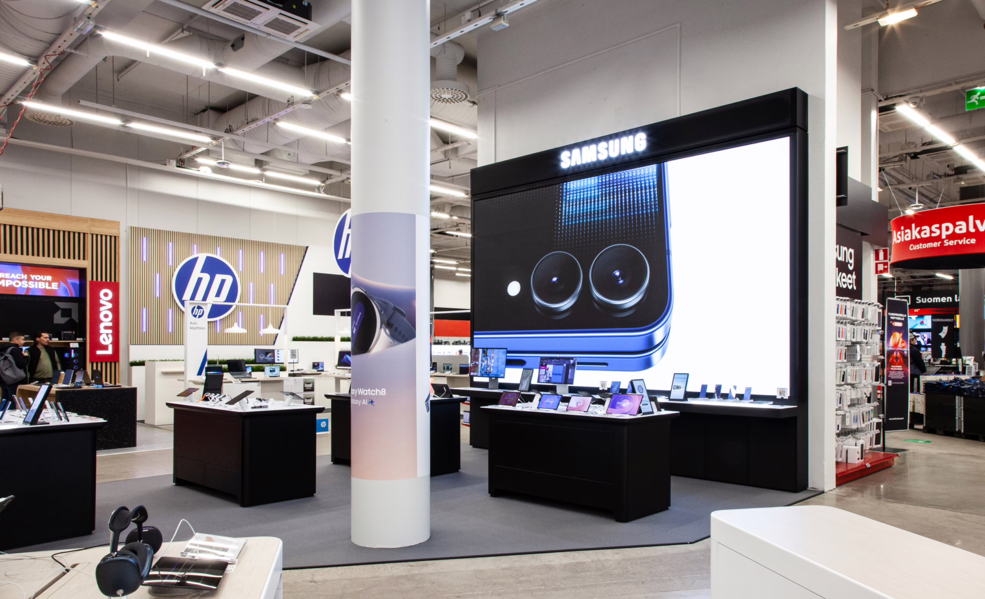 A new Samsung shop-in-shop has opened inside Verkkokauppa Helsinki, bringing a modern and immersive brand experience to the store. Produced and installed by Blink, the space showcases Samsung’s latest devices with a clean, interactive layout. The design follows Samsung’s global retail standards while fitting seamlessly into Verkkokauppa’s environment.